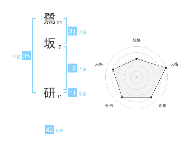 鷺坂 研さんの総格は42画の3点!