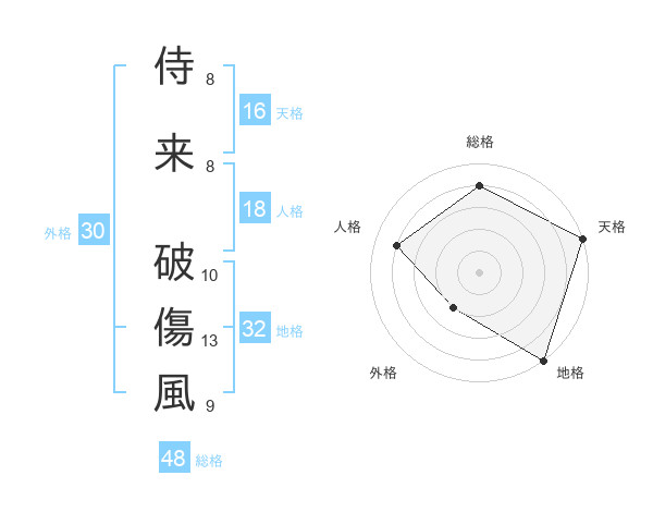 侍来 破傷風さんの総格は48画の4点!