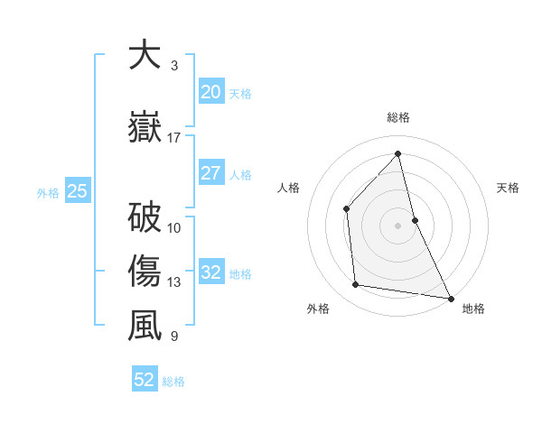 大嶽 破傷風さんを姓名の画数から五運を鑑定