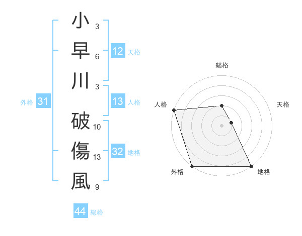 小早川 破傷風さんを姓名の画数から五運を鑑定