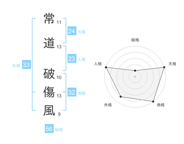 常道 破傷風さんを姓名の画数から五運を鑑定