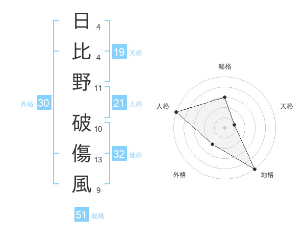 日比野 破傷風さんを姓名の画数から五運を鑑定