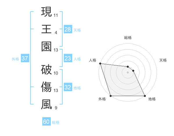 現王園 破傷風さんを姓名の画数から五運を鑑定