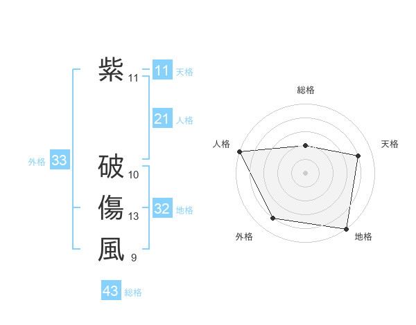 紫 破傷風さんを姓名の画数から五運を鑑定