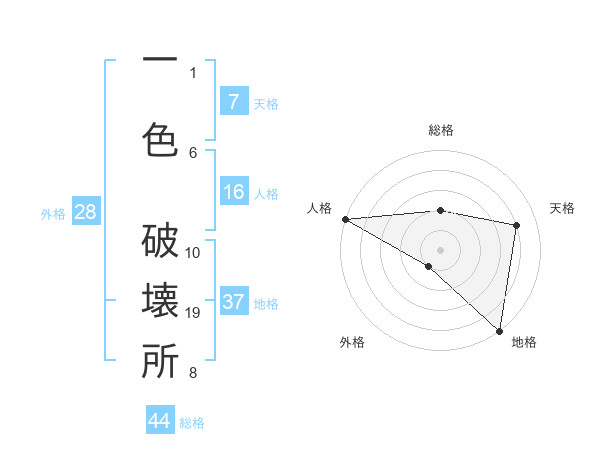 一色 破壊所さんを姓名の画数から五運を鑑定