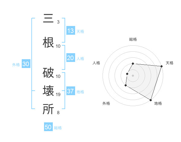 三根 破壊所さんの総格は50画の2点!