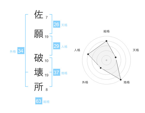 佐願 破壊所さんを姓名の画数から五運を鑑定