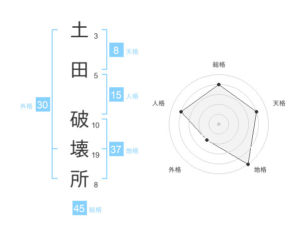 土田 破壊所さんの総格は45画の4点