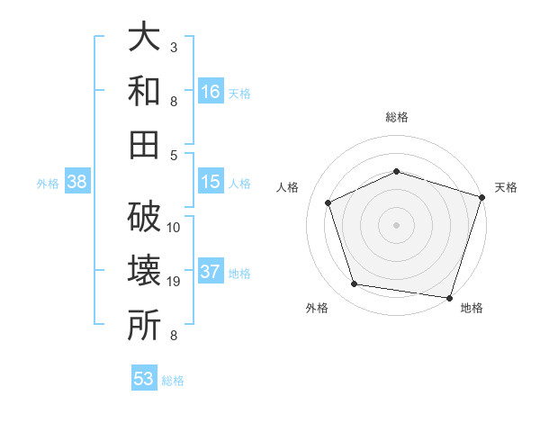 大和田 破壊所さんの総格は53画の3点!