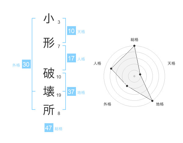 小形 破壊所さんの総格は47画の5点!