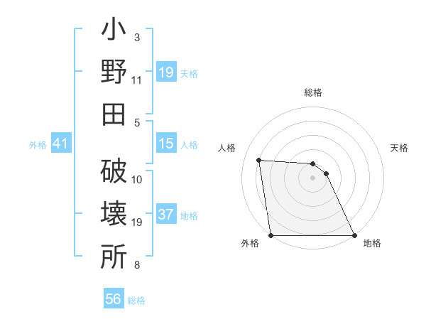 小野田 破壊所さんを姓名の画数から五運を鑑定
