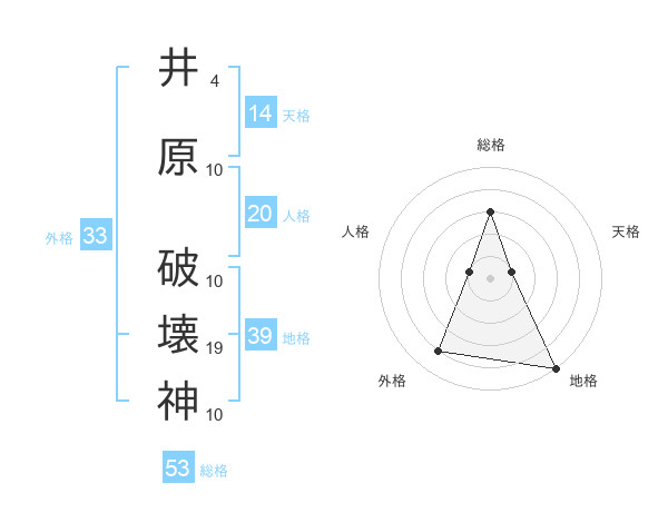 井原 破壊神さんを姓名の画数から五運を鑑定