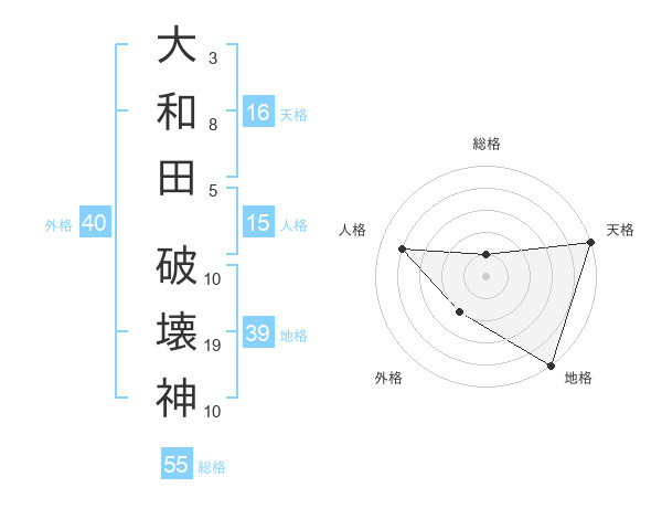 大和田 破壊神さんを姓名の画数から五運を鑑定