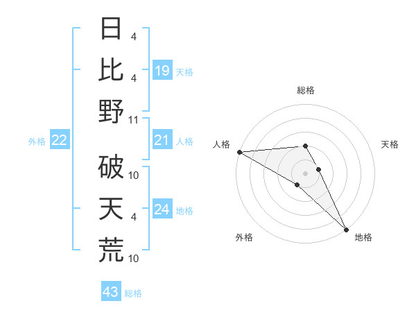 日比野 破天荒さんを姓名の画数から五運を鑑定