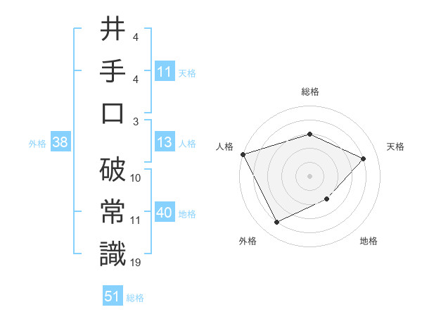 井手口 破常識さんを姓名の画数から五運を鑑定