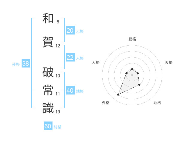 和賀 破常識さんを姓名の画数から五運を鑑定