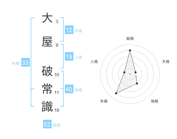 大屋 破常識さんを姓名の画数から五運を鑑定