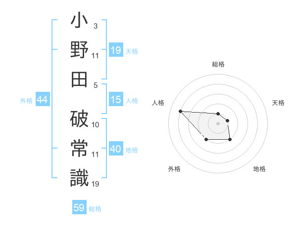小野田 破常識さんの外格は44画の2点