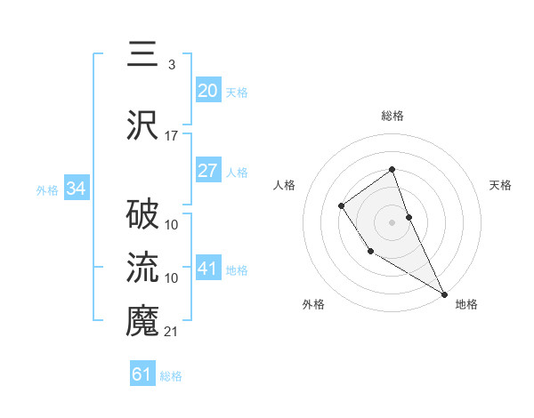 三沢 破流魔さんを姓名の画数から五運を鑑定