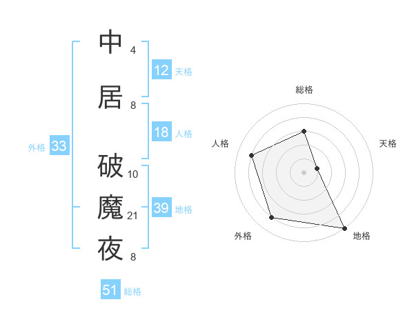 中居 破魔夜さんを姓名の画数から五運を鑑定