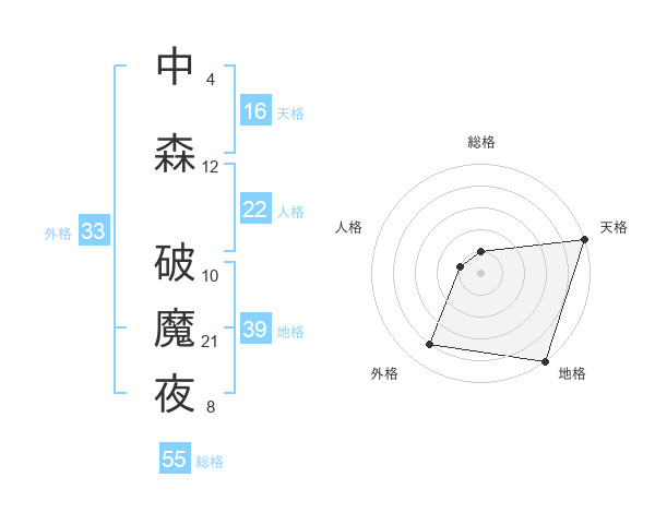 中森 破魔夜さんの天格は16画の5点!