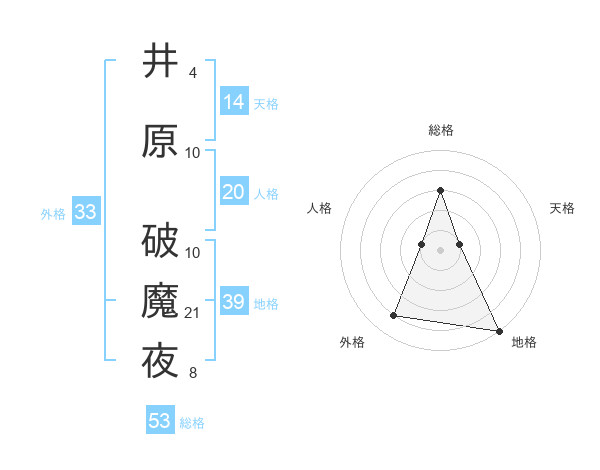 井原 破魔夜さんを姓名の画数から五運を鑑定