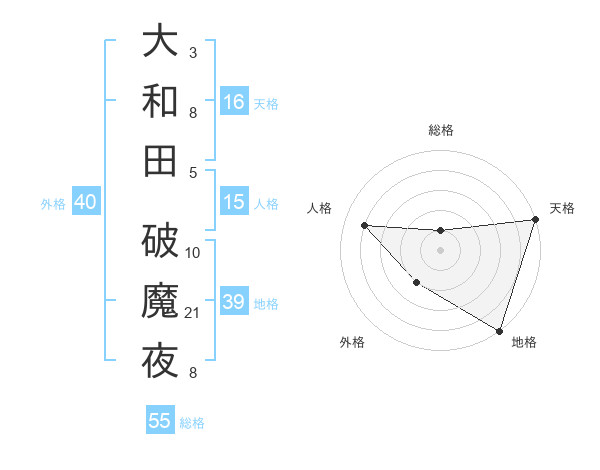 大和田 破魔夜さんの天格は16画の5点!