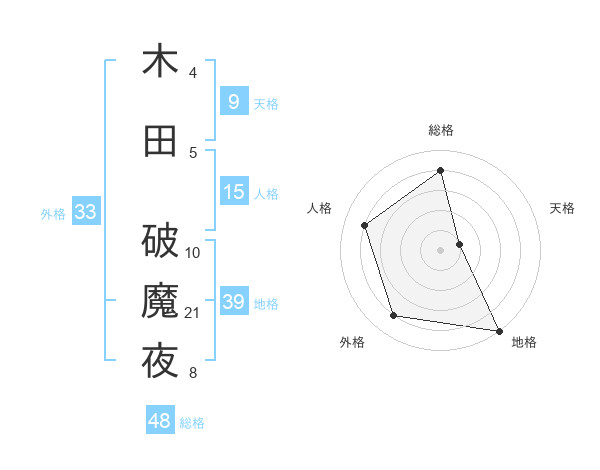 木田 破魔夜さんを姓名の画数から五運を鑑定