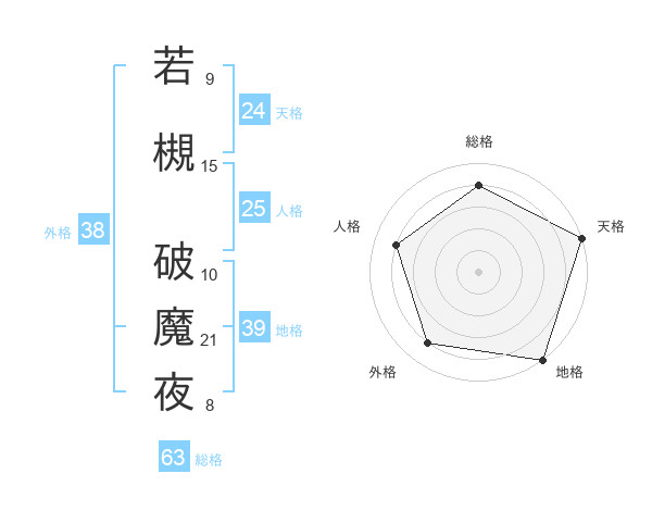 若槻 破魔夜さんを姓名の画数から五運を鑑定