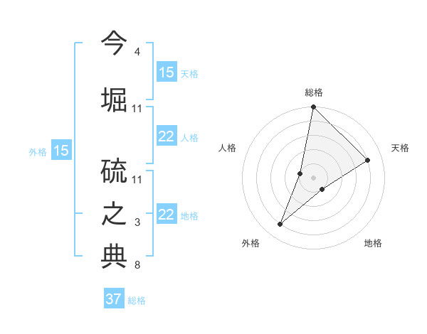 今堀 硫之典さんを姓名の画数から五運を鑑定