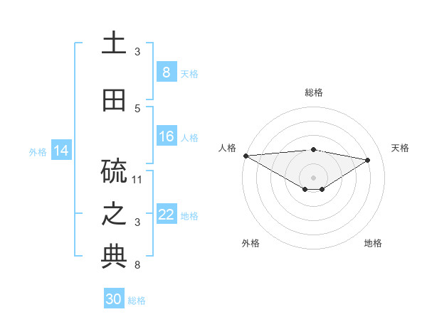 土田 硫之典さんを姓名の画数から五運を鑑定