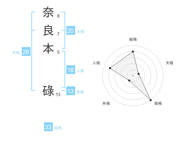 奈良本 碌さんの総格は33画の4点!