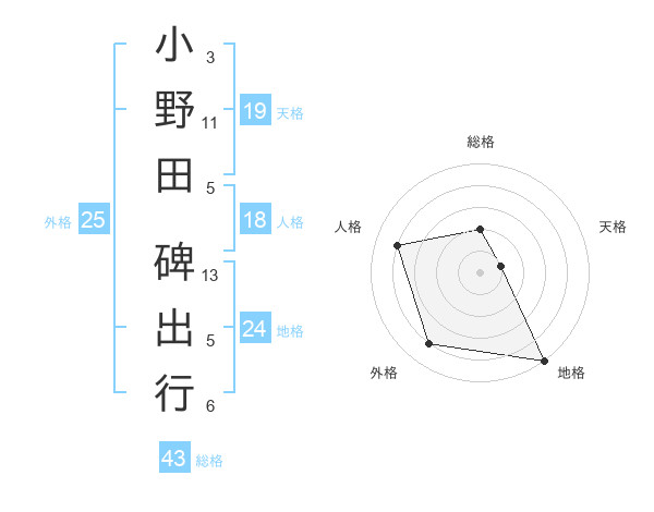 小野田 碑出行さんの外格は25画の4点!