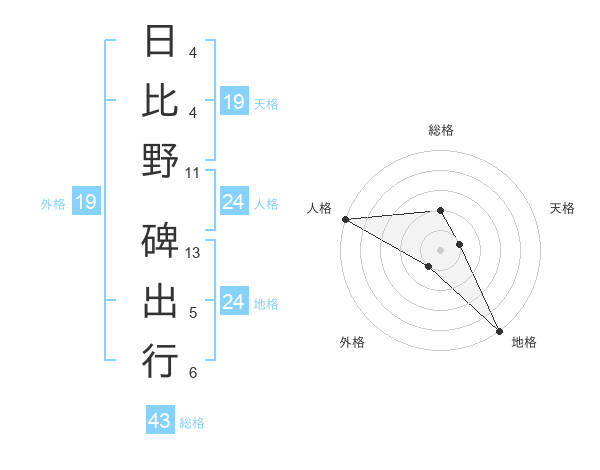 日比野 碑出行さんを姓名の画数から五運を鑑定