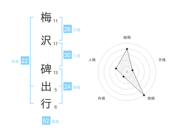 梅沢 碑出行さんの総格は52画の4点