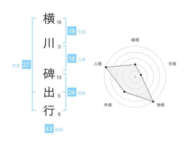 横川 碑出行さんを姓名の画数から五運を鑑定
