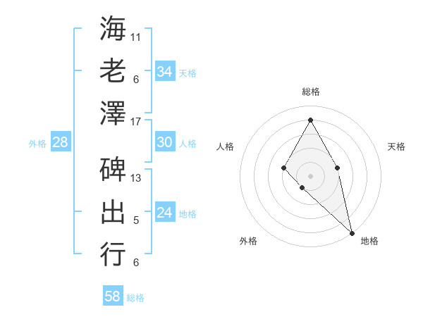 海老澤 碑出行さんの総格は58画の4点!
