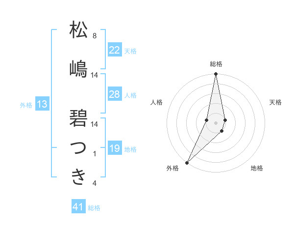 松嶋 碧つきさんを姓名の画数から五運を鑑定