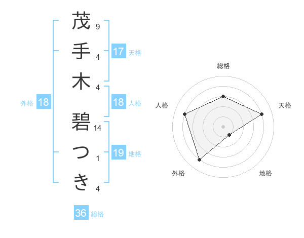 茂手木 碧つきさんを姓名の画数から五運を鑑定
