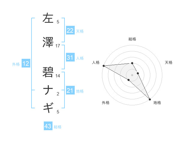 左澤 碧ナギさんの天格は22画の1点!