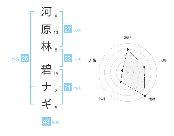 河原林 碧ナギさんの総格は48画の4点!