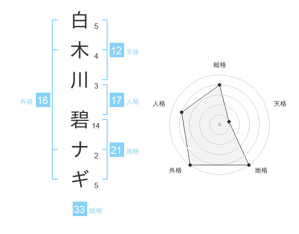 白木川 碧ナギさんを姓名の画数から五運を鑑定