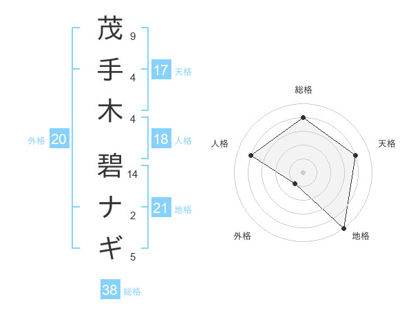 茂手木 碧ナギさんを姓名の画数から五運を鑑定
