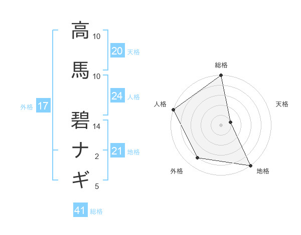高馬 碧ナギさんを姓名の画数から五運を鑑定