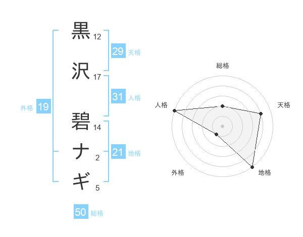 黒沢 碧ナギさんを姓名の画数から五運を鑑定