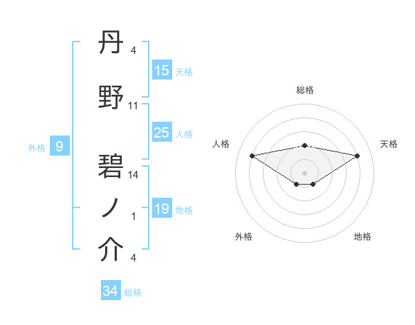 丹野 碧ノ介さんの総格は34画の2点!