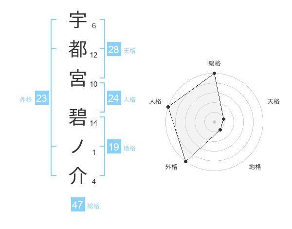 宇都宮 碧ノ介さんの総格は47画の5点!