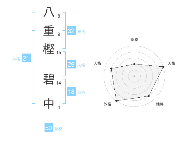 八重樫 碧中さんの天格は32画の5点!