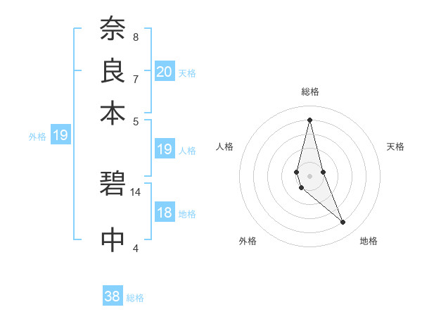 奈良本 碧中さんの総格は38画の4点!