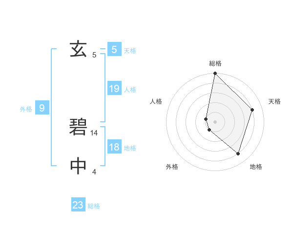 玄 碧中さんの総格は23画の5点!